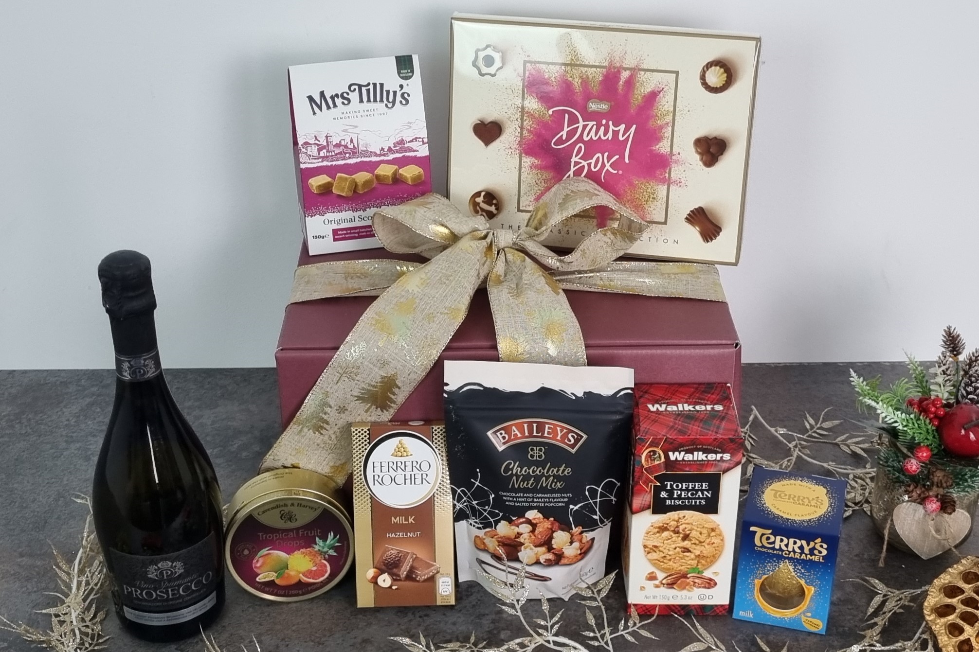 Indulge in a luxurious selection of delightful favourites with the Gourmet Delights Gift Box with Prosecco & Sweet Treats – the perfect gift for loved ones, colleagues, or yourself! Elegantly presented and brimming with gourmet delights, this hamper offers a heart-warming experience with every bite.